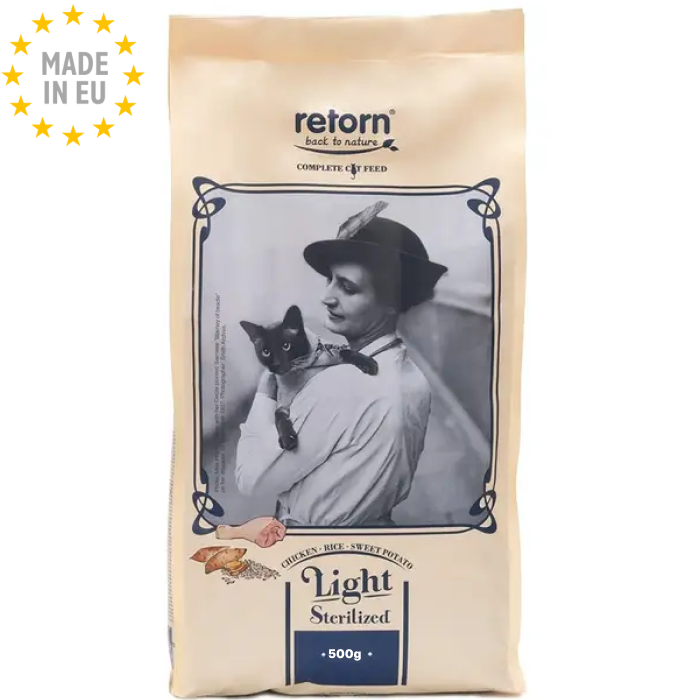 Retorn Light Sundt tørfoder til Steriliseret Kat Med Kylling & Sød kartoffel, 500g EU