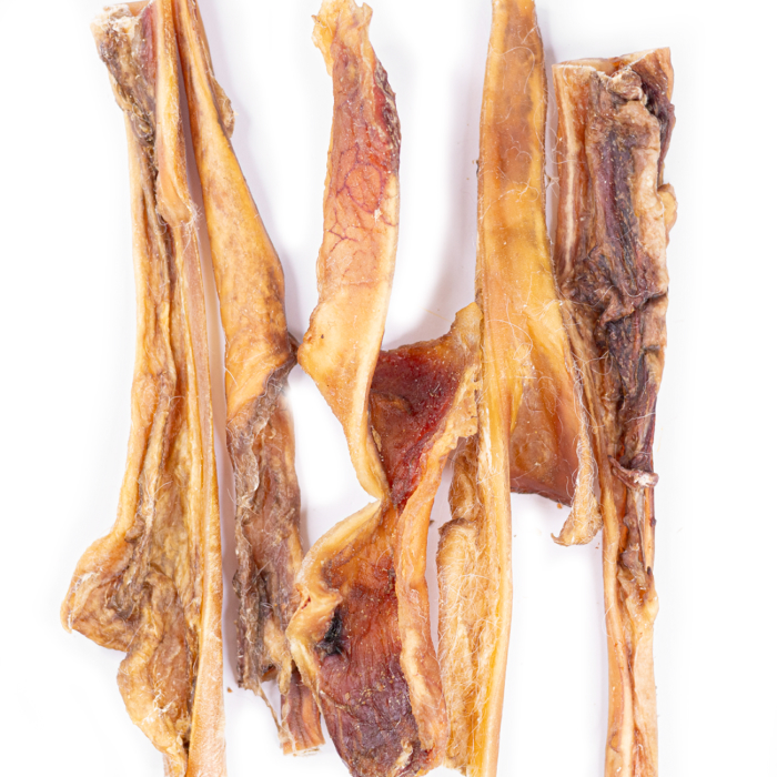 Pandelapper fra okse er en super tyggesnack til din hund, er hårdt og sejt stykke hud der virkelig er noget arbejde i!